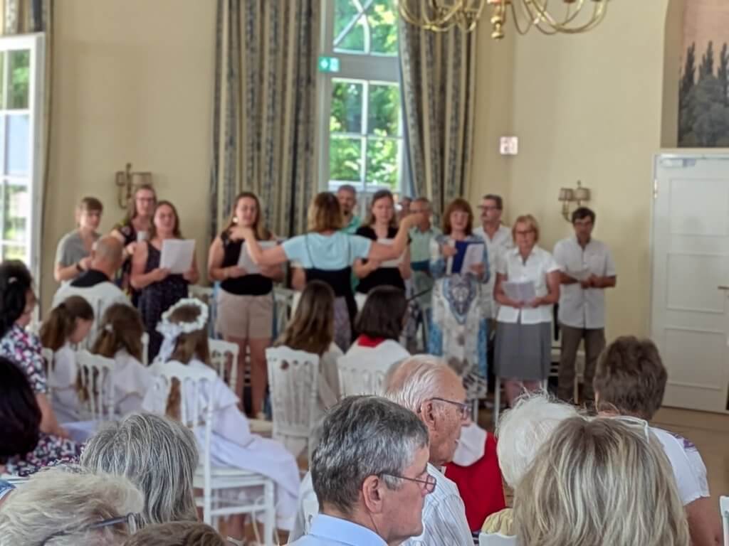 Für das leibliche Wohl war gesorgt. Ein besonderer Dank gilt dem Hausherren, Rochus Graf zu Lynar. Als zwischenzeitlich der Andrang am Grill zu groß wurde, nahm er sich persönlich Zeit, unsere fleißigen Helfer bei der Versorgung zu unterstützen. Danach waren die Bremer Stadtmusikanten zu Besuch. Das Märchentheater, das Kinder und Erwachsene einstudiert hatten, kam sehr gut an. Auch die kleine Sketche-Runde frei nach Loriot fand großen Beifall. Am Ende lud eine bunte Tafel aus selbstgebackenen Kuchen zum Kaffeetrinken ein. Damit endete ein rundum schöner Dekanatstag, den Joachim Schorten musikalisch begleitet hat. Wir danken allen, die geholfen haben, diesen Dekanatstag zu einen schönen Fest zu machen. Ebenso danken wir allen, die mit ihrer Gabe bei der Kollekte die Arbeit der Caritas in St. Petersburg unterstützt haben. In den nächsten Tagen können wir 1342,30 € überweisen. Das ist ein starkes Zeichen der Hilfsbereitschaft in herausfordernden Zeiten.