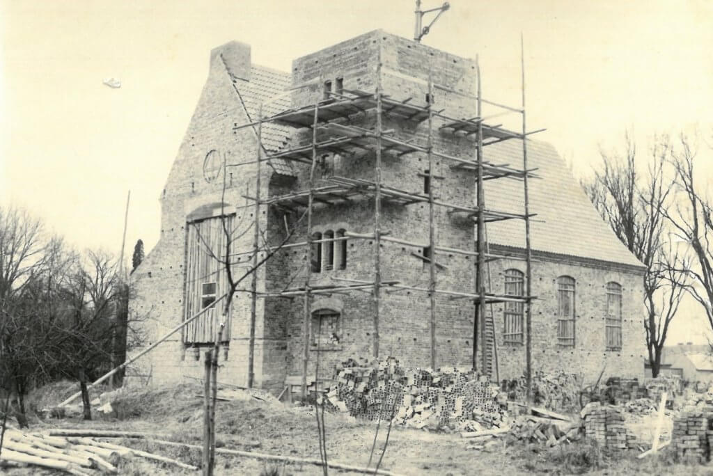 Im Jahr 1954 wurde der Grundstein für das Kirchengebäude gelegt, das nach Entwürfen des Cottbuser Architekten Hanke errichtet werden sollte. Bereits nach nur zwei Jahren Bauzeit konnte die Kirche im November 1956 feierlich eingeweiht werden.